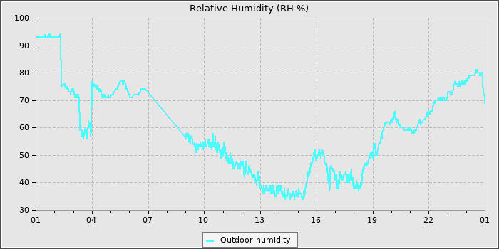 MOON:- Set 01:05 Rise 14:22 10 days old 73% illuminated Waxing Gibbous Current Conditions:- System Forecast:- |